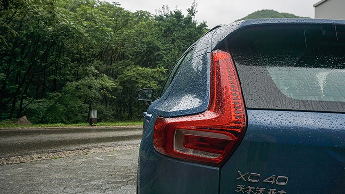XC40的車尾的造型設(shè)計是典型的北歐設(shè)計風(fēng)。標(biāo)志性的豎狀尾燈,也被稱作是"維京之斧",與車頭的"雷神之錘"相呼應(yīng)。夜晚點亮后的辨識度特別高,很容易看出這是臺沃爾沃。