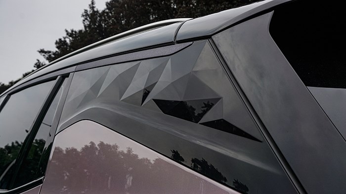 細節(jié)之處的用心同樣體現(xiàn)在棱面機甲C柱上,凹凸起伏的型面類似于戰(zhàn)士的鎧甲,在光照下呈現(xiàn)出不同反射效果,有一種科幻片般的前衛(wèi)感。