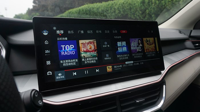 在功能上,10.25英寸的中控屏搭載CoLynk智能互聯(lián)系統(tǒng),集成了語音識別,4G熱點,高德導航,在線音樂等功能,還支持將導航信息三指飛屏轉(zhuǎn)移到液晶儀表上的功能。