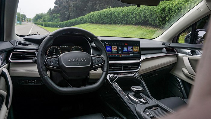階梯式的中控布局層次鮮明,雙拼色的搭配也表現(xiàn)了領(lǐng)克家族“都市對立美學”的理念。 整體做工用料較為出色,相比同級別的合資車型要高級不少。