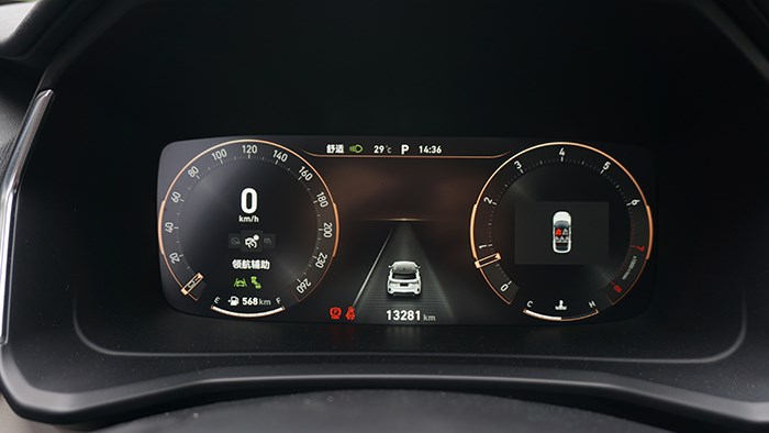 10.25英寸的全液晶儀表盤顯示效果較為細膩,界面UI設(shè)計也很有特點。此外,儀表盤在不同駕駛模式下,會呈現(xiàn)出不同的主題色調(diào)。
