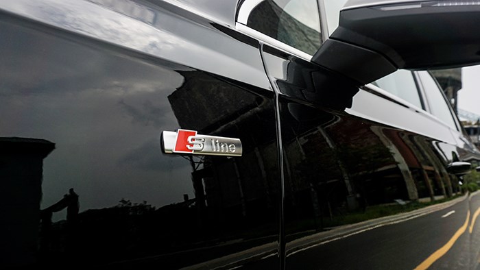 車身側(cè)面,奧迪Q7的長(zhǎng)寬高分別為5067*1970*1715mm,軸距為2999mm,車身尺寸較老款車型微調(diào),但設(shè)計(jì)基本與老款車型一致。此外,由于此次試駕的是一款S Line車型,下方在S Line套件的加持下層次感更強(qiáng)。