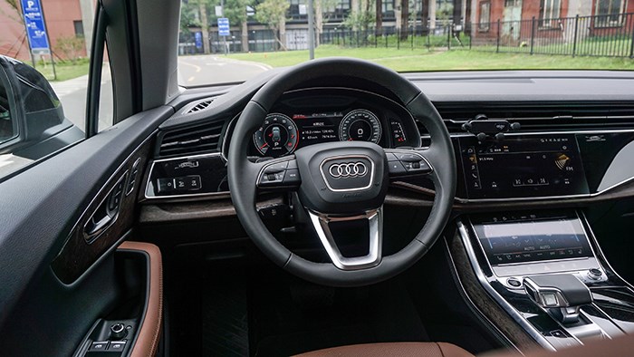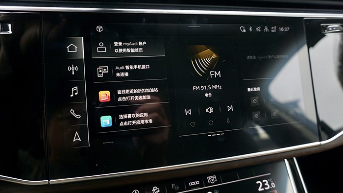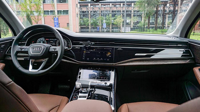 全新的車機(jī)系統(tǒng)搭配上全液晶儀表盤,共同打造了奧迪智能座艙,可通過(guò)方向盤處的“VIEW”按鍵進(jìn)行切換。這輛奧迪Q7上,還配備了B&O音響。