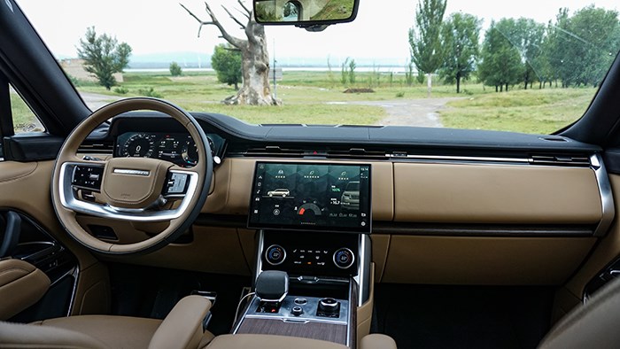 內(nèi)飾方面,全新攬勝繼續(xù)展現(xiàn)簡潔風格,在用料方面,其采用了大量的高檔皮質(zhì)材料以及木紋飾板,讓其內(nèi)飾的豪華感和精致感更加突出,打造出更具有科技氛圍的豪華感。
