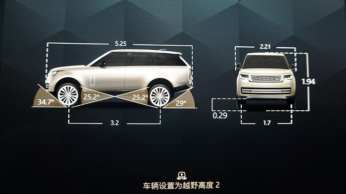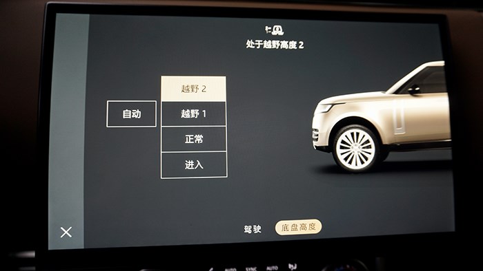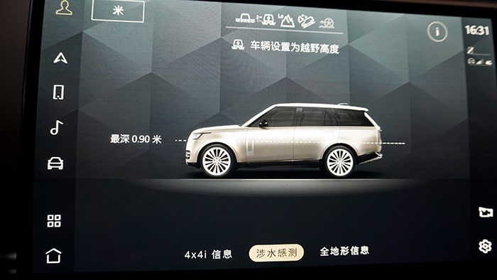新款的路虎攬勝在越野模式上,底盤高度接近于30公分,接近角可達34.7度,離去角29度,縱向通過角25.2度。涉水深度可達0.9m,此外該車還配備有主動轉(zhuǎn)向,后橋差速鎖以及中央差速器。