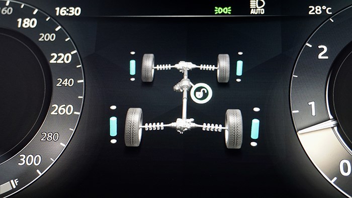 全新攬勝加長版均匹配8速手自一體變速器,同時全系標配全時四驅(qū)、中央差速鎖、后橋差速鎖、四輪轉(zhuǎn)向、空氣懸架、懸架軟硬調(diào)節(jié)功能等,其中,裝備的48伏主動式側(cè)傾控制系統(tǒng),可瞬間向防傾桿輸出1400牛米的扭矩,力求最大程度保證車身穩(wěn)定性;主動式后電子差速鎖可在高速過彎、濕滑路面或越野車輪懸空等情況時有效增強后輪牽引力。此外,第二代智能全地形反饋適應系統(tǒng)具備八種駕駛模式,可根據(jù)路況自動調(diào)節(jié)底盤系統(tǒng),也可啟用自定義模式,根據(jù)自身偏好設(shè)定底盤風格。