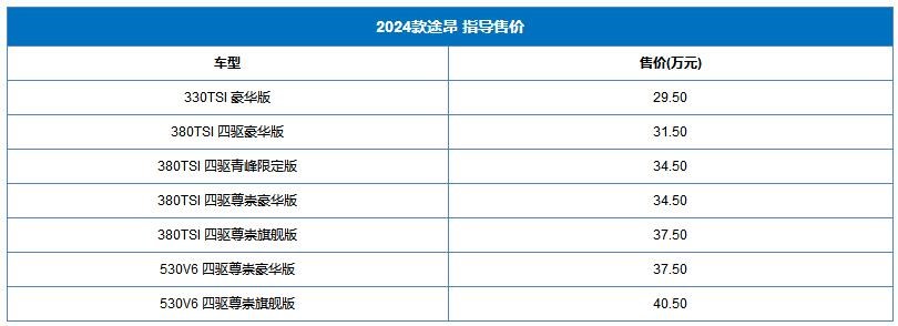 上汽大眾2024款途昂上市 售價(jià)為29.50-40.50萬(wàn)