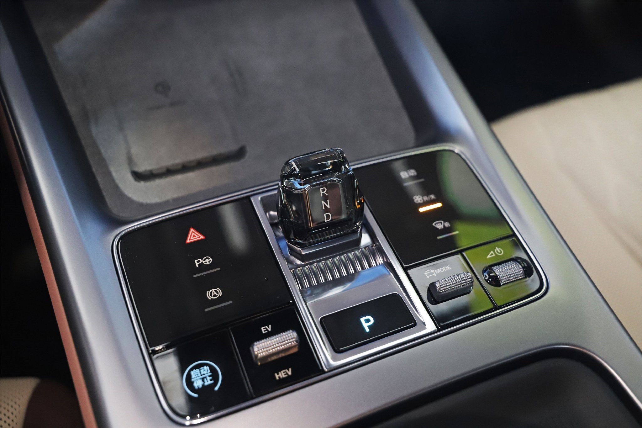 比亞迪海豹DM-i采用四幅式的運動方向盤。搭配10.25英寸全液晶儀表和15.6英寸的自適應旋轉中控屏,水晶材質的電子換擋機構。另外高配車型還帶有HUD抬頭顯示系統(tǒng),更具有科技感。