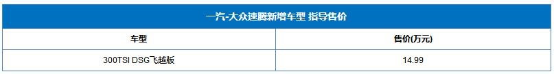 近日,一汽-大眾速騰1.5T車型新增一款入門版車型,售價(jià)為14.99萬。