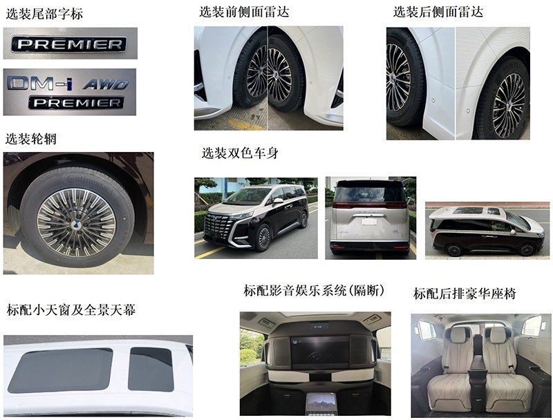 近日,騰勢(shì)D9 PREMIER 創(chuàng)始版四座申報(bào)圖公布。