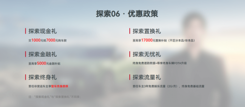 更值得一提的是,現(xiàn)在入手探索06還可享受交1000元抵7000元購車款、至高5000元金融補(bǔ)貼,至高17000元置換補(bǔ)貼(不區(qū)分本品/非本品)等超值福利。在11月30日之前,鎖定奇瑞汽車各大電商平臺(tái)參與百億狂歡購,還有機(jī)會(huì)抽取11110元秒殺券、至高49999元購車券等各類優(yōu)惠券!機(jī)會(huì)難得,有購車意向的朋友現(xiàn)在入手絕對(duì)不虧!