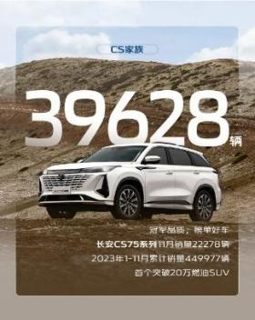 長安CS75系列11月銷量22278輛,連續(xù)八個月單月突破2萬輛大關(guān)!