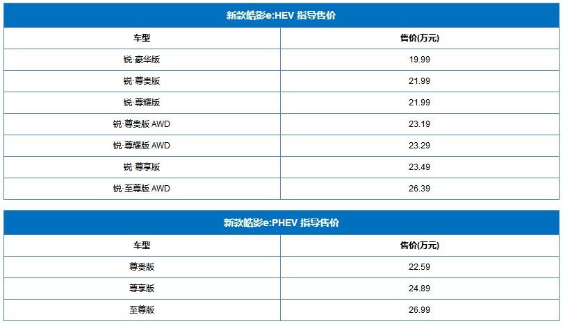 新款皓影e:HEV/e:PHEV正式上市 售價19.99萬起