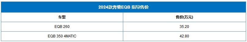 2024款奔馳EQB正式上市 售價35.20-42.80萬