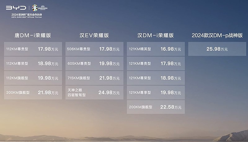 2月28日,比亞迪唐DM-i榮耀版正式上市,共推出4款車型,售價(jià)區(qū)間為17.98-21.98萬。