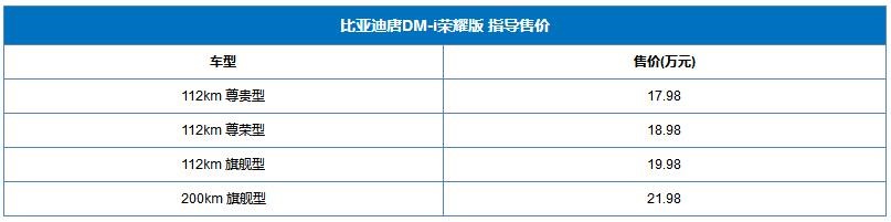 比亞迪唐DM-i榮耀版正式上市 售價(jià)17.98-21.98萬