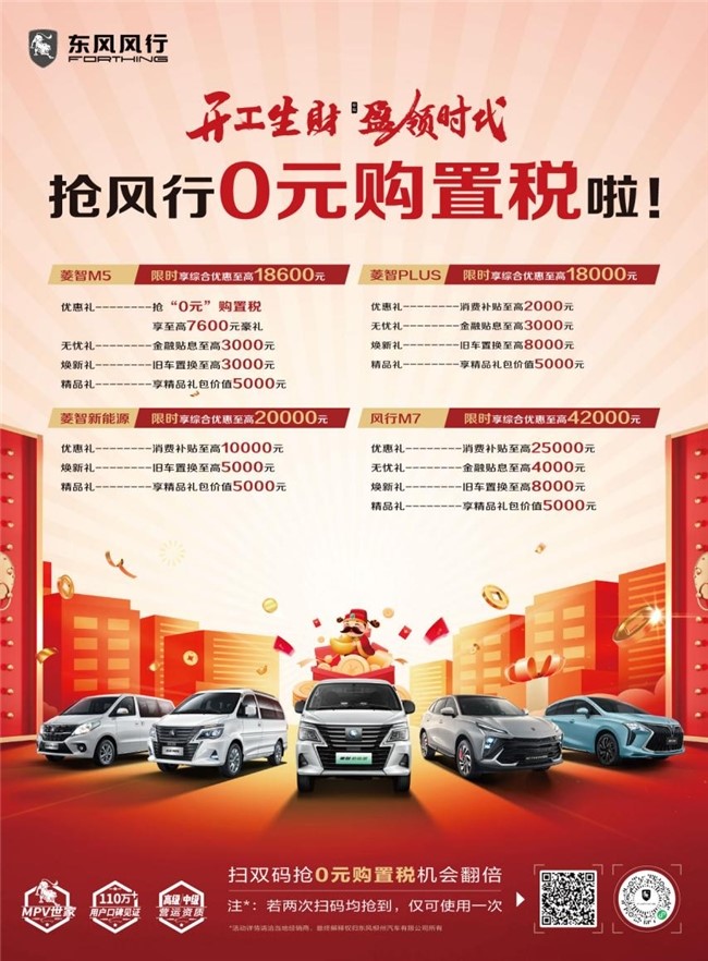 不僅如此,進(jìn)入風(fēng)行APP或公眾號(hào)掃碼進(jìn)入H5,即可參與抽獎(jiǎng),除了全免或半價(jià)專享購(gòu)置稅抵扣券,更有驚喜開(kāi)工紅包,助力用戶元?dú)鉂M滿,開(kāi)工大吉。