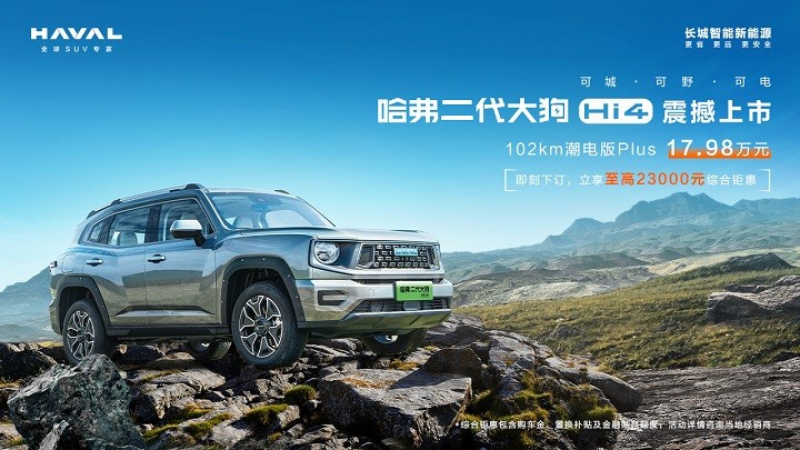 3月25日,哈弗二代大狗Hi4版震撼上市,以“可城可野可電”之名,將“3/4刻度輕越野”與“智能電混四驅(qū)Hi4”價值融合,讓哈弗二代大狗不止于城市,亦可全面覆蓋更具挑戰(zhàn)性的野外場景,強(qiáng)勢帶領(lǐng)哈弗品牌繼續(xù)領(lǐng)跑輕越野細(xì)分市場!哈弗二代大狗Hi4版102km 潮電版Plus車型,官方指導(dǎo)價17.98萬元,針對購車用戶特推出7重購車好禮: