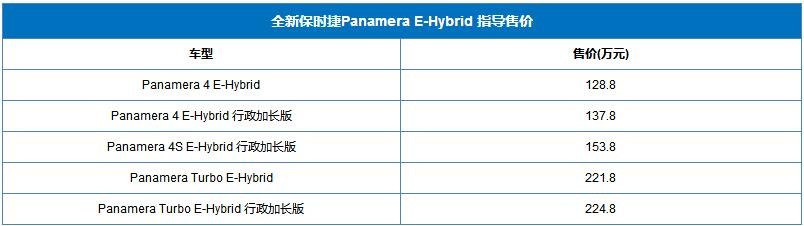 近日,全新保時捷Panamera E-Hybrid售價公布,共推出5款車型,售價區(qū)間為128.8-224.8萬。新車預(yù)計北京車展上市。