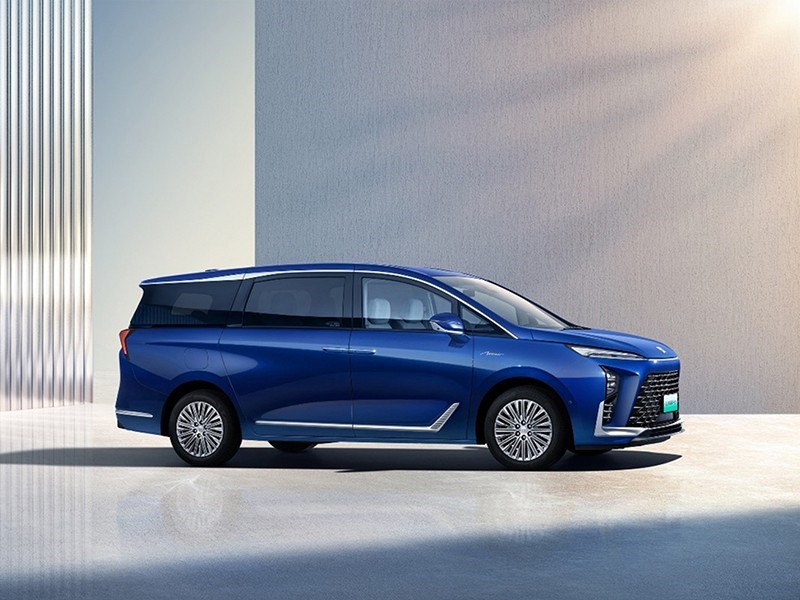 外觀方面,新車不同于燃油版造型,更類似別克世紀(jì)外觀。前臉采用極具沖擊力大尺寸格柵,搭配分體式大燈,造型依舊犀利。車側(cè)繼續(xù)提供側(cè)滑門以及隱私玻璃,車尾尾燈相比別克世紀(jì)更為收斂。車身尺寸方面,新車長寬高分別為5219*1878*1807mm,軸距3088mm。