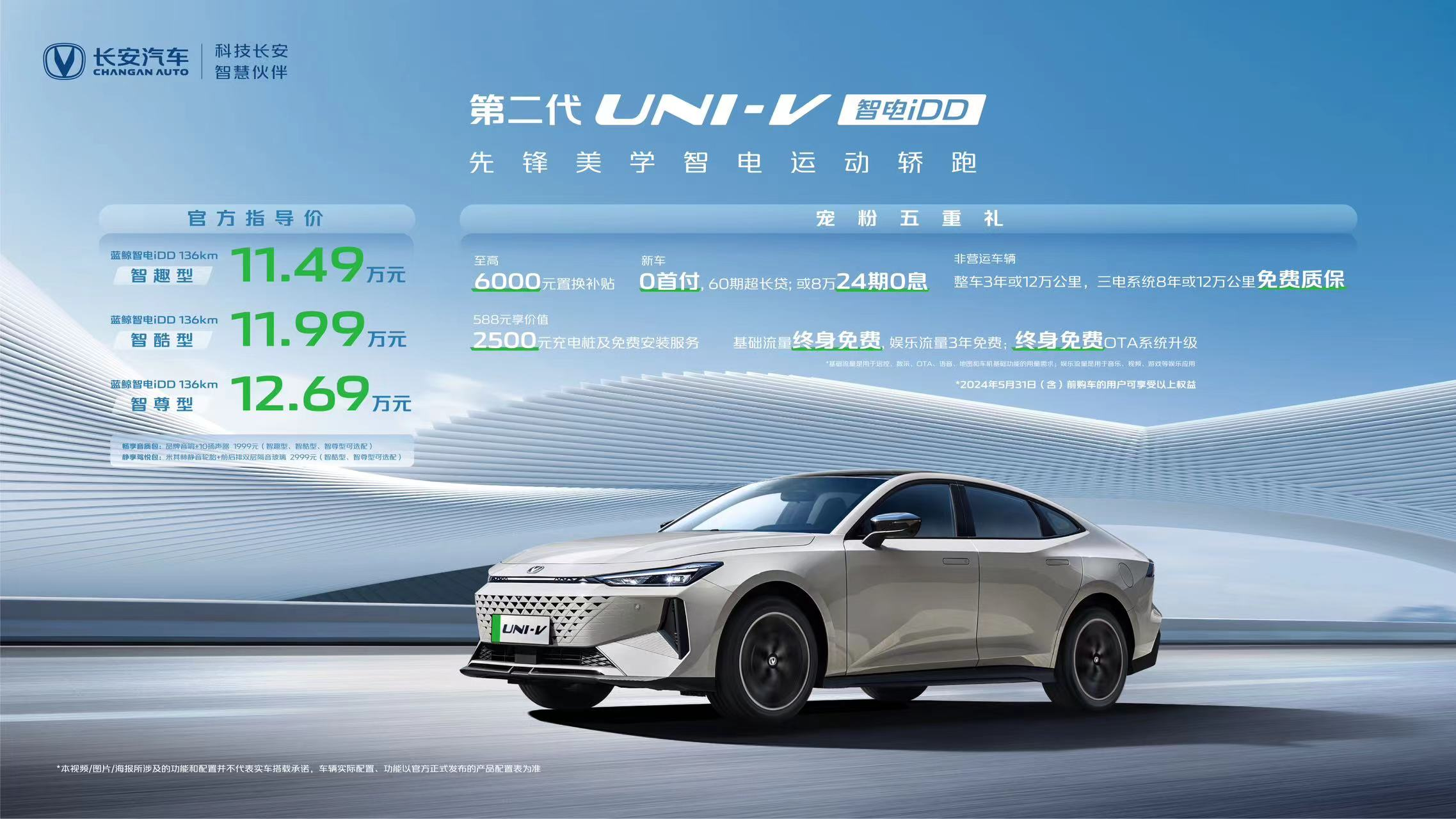 除了親民的售價和極具高價值的產(chǎn)品力外,即日起至5月31日購買第二代UNI-V智電iDD,可享受寵粉5重禮,至高6000元置換補貼;新車0首付,60期超長貸,或8萬24期0息;非營運車輛整車3年或12萬公里,三電系統(tǒng)8年或12萬公里免費質(zhì)保;588元享價值2500元充電樁及免費安裝服務;基礎流量終身免費,娛樂流量3年免費,終身免費OTA系統(tǒng)升級。