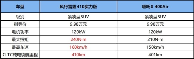 近幾年,新能源汽車市場越來越卷,價格戰(zhàn)一波未平一波又起。近日,特斯拉就宣布在全球范圍內進行大降價,部分車型價格下調達1.4萬元,這無疑又加重了市場的火藥味!不得不說,在當下競爭十分激烈的新能源市場中,只有產品力強、性價比高的車型,才能贏得消費者青睞,而在10萬級純電SUV這個細分市場里,風行雷霆410實力版和哪吒X 400Air就是兼具實力和性價比的明星車型,那么,強強相遇,誰會更強呢?我們就來比一比,看誰更能打!