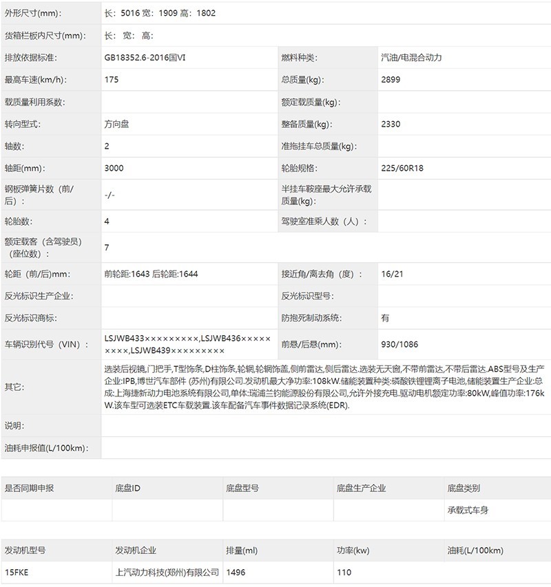動(dòng)力方面,新車搭載1.5T插混,其中發(fā)動(dòng)機(jī)最大功率110kW,電機(jī)最大功率為176kW。