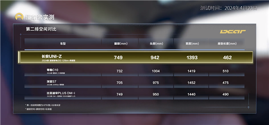 懂車(chē)帝也通過(guò)HPM標(biāo)準(zhǔn)測(cè)試假人對(duì)長(zhǎng)安UNI-Z的空間表現(xiàn)進(jìn)行了實(shí)測(cè)。測(cè)試顯示,長(zhǎng)安UNI-Z表現(xiàn)優(yōu)秀,第一排高度989mm,用戶最為關(guān)注的第二排腿部空間也達(dá)到了749mm,膝部空間接近兩拳。相較于其他競(jìng)品,長(zhǎng)安UNI-Z與宋PLUS DM-i的第二排腿部空間在此次測(cè)試中并列第一。