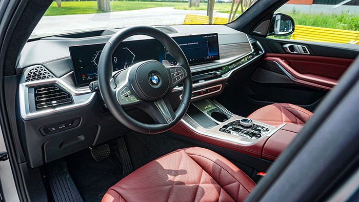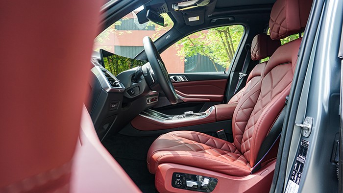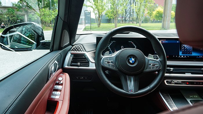 雖然在視覺上是全新改款的,但是對(duì)于“實(shí)用”和“豪華”的理解,華晨寶馬X5上的這套內(nèi)飾設(shè)計(jì)顯然更好的詮釋了。車內(nèi)選用了寶馬最經(jīng)典的黑色/火山紅配色,一定程度上增強(qiáng)了運(yùn)動(dòng)感。經(jīng)典的M運(yùn)動(dòng)方向盤帶有電加熱功能,角度調(diào)節(jié)也是電動(dòng)的。