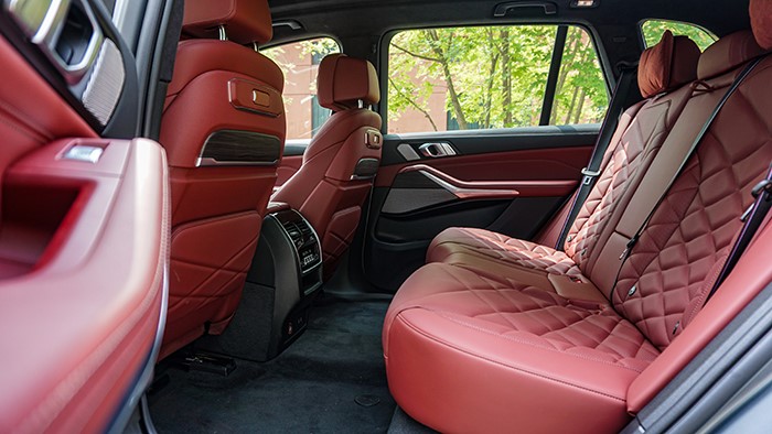 國產(chǎn)版全新寶馬X5最大提升就是軸距加長(zhǎng)了130mm,也就是說后排縱向空間增加了130mm,這對(duì)于后排乘客的腿部空間當(dāng)然是極其友好的。后排座椅坐墊也進(jìn)行了加厚,并略微調(diào)大了后排座椅靠背的角度。這臺(tái)頂配尊享版后排座椅還帶有電加熱功能。