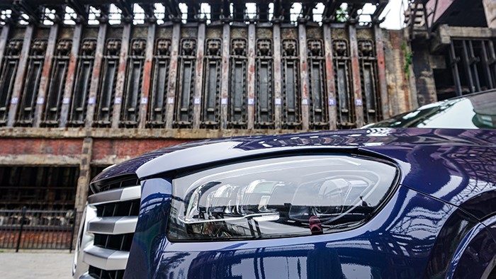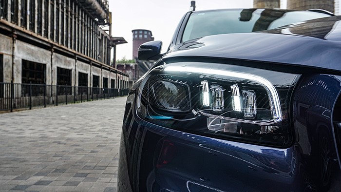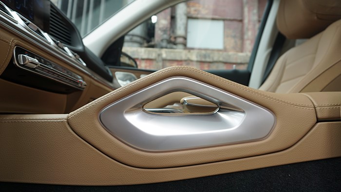 標志性的超大三叉星LOGO鑲嵌在立體式進氣格柵中央,彰顯品牌身份。從車身尺寸上已經(jīng)全面超越邊上的奔馳GLE,因此營造的氣場也更加強烈。