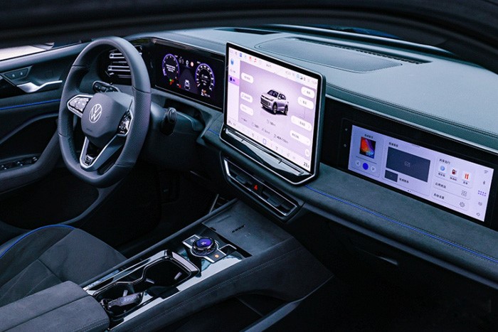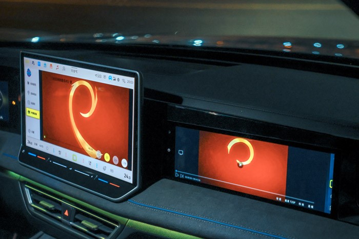 內(nèi)飾方面,途觀L Pro智能座艙也是全副武裝,除了中控臺那塊15英寸智能2K巨無霸,還安排了HUD抬頭顯示屏、11.6英寸副駕高清娛樂屏、黑晶流光智控旋鈕屏,當然還有10.3英寸全數(shù)字液晶儀表屏,再聯(lián)動手機,整車能實現(xiàn)6屏互聯(lián)互通。