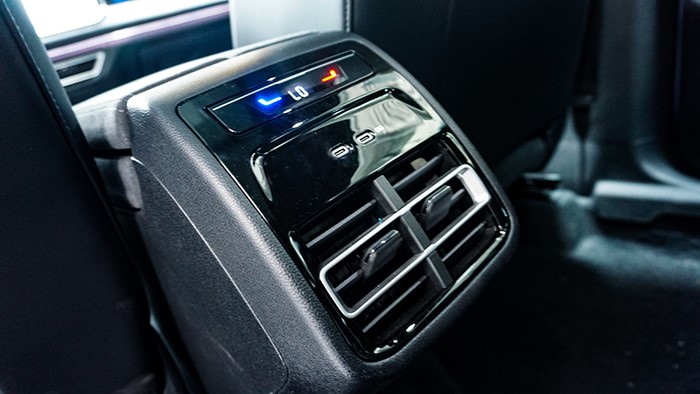 大眾途觀L Pro后排的腿部空間可以說很寬敞,座椅的傾斜角度也很舒適,后排采用了獨(dú)立空調(diào),行李廂容積達(dá)471-1696L。