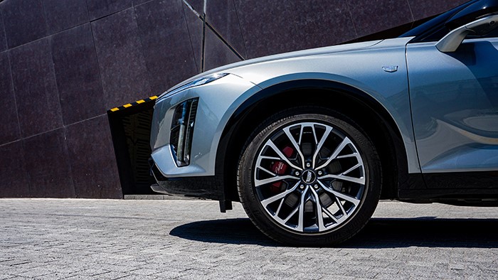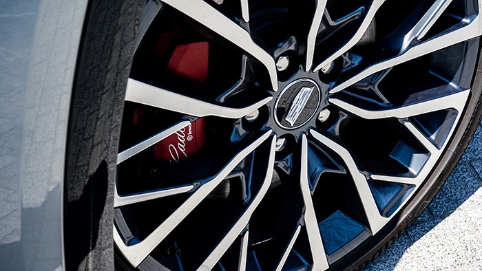 輪轂設(shè)計(jì):凱迪拉克GT4配備了極具科技感和運(yùn)動感的19寸輪轂,采用獨(dú)特的造型配合大紅色剎車卡鉗,提升了整體的視覺吸引力。輪胎規(guī)格為245/45 R19。