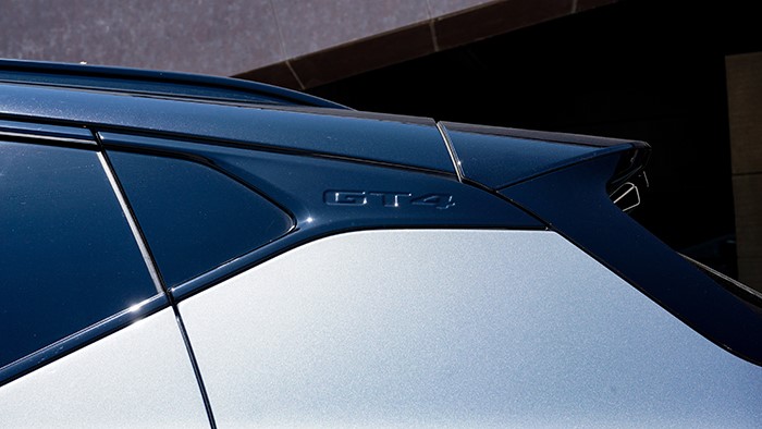 車頂C柱上設(shè)計(jì)了GT4字樣,流線型設(shè)計(jì)和全景玻璃天窗,增加了車輛的運(yùn)動感。