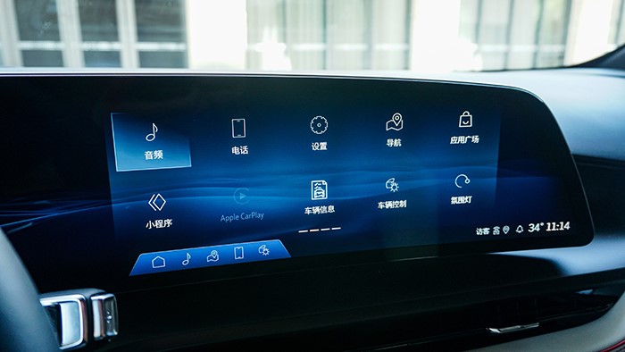 車輛環(huán)境照明設(shè)計(jì)采用環(huán)繞式氛圍燈,營造出舒適的駕乘氛圍,照明效果支持多種顏色和亮度調(diào)節(jié)。