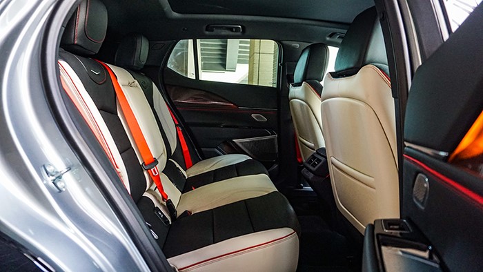 空間布局:凱迪拉克GT4的后排空間可以勝任日常家用,后排座椅寬大舒適,同樣使用紅色安全帶,十分搶眼。后排設(shè)置有空調(diào)出風(fēng)口及手機(jī)電源接口。