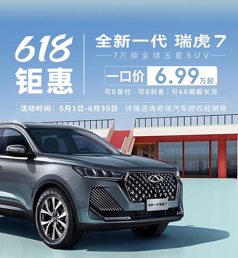 奇瑞瑞虎7開啟官方優(yōu)惠活動 優(yōu)惠后售價6.99萬起