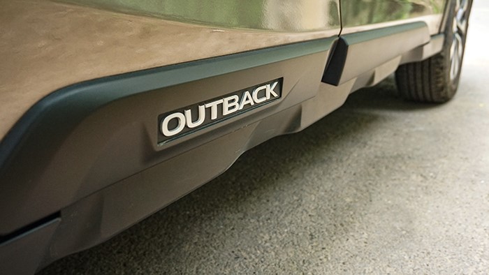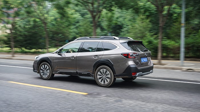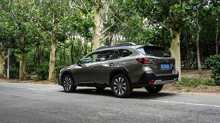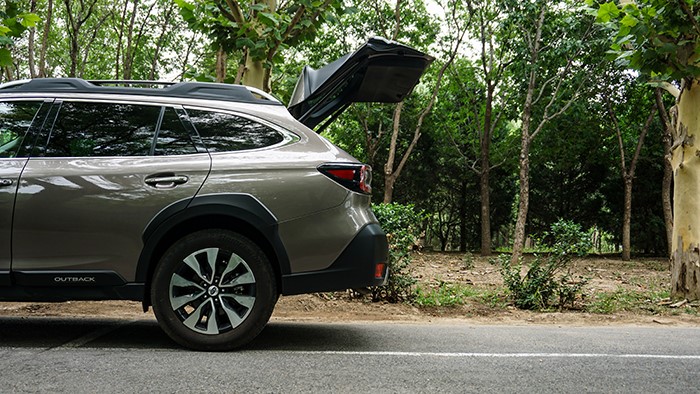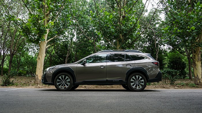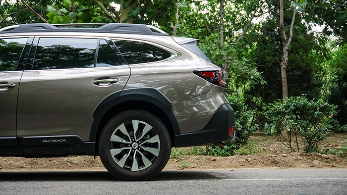 傲虎旗艦版的車身側(cè)面線條和車身尺寸與其他版相同,長(zhǎng)寬高非別為4880*1875*1675mm,軸距為2745mm,在車門(mén)下方有白色“OUTBACK”標(biāo)示。