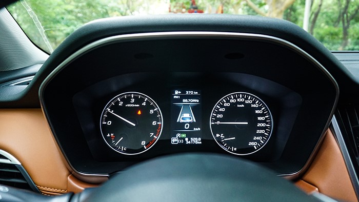 斯巴魯傲虎2.5i旗艦版使用了較為傳統(tǒng)的儀表盤(pán)設(shè)計(jì),常規(guī)指針顯示。中央彩色屏幕可以顯示非常多的車輛信息,包括EyeSight駕駛輔助系統(tǒng)一些功能。