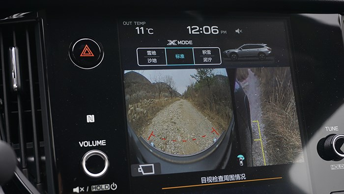 全車360度影像對(duì)于戶外穿越時(shí)的幫助還是很大的的,只需要按下攝像頭鍵,就可以在屏幕里了解野外的路況。
