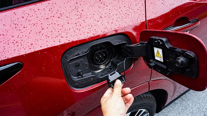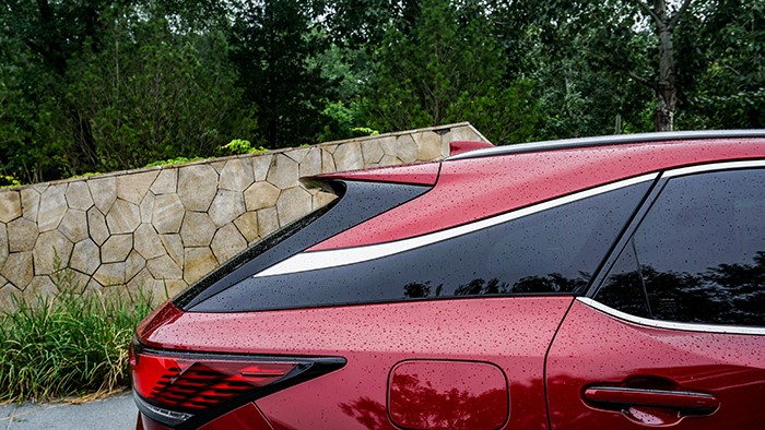 經(jīng)典的懸浮式C柱在視覺(jué)上非常有辨識(shí)度,而那條鍍鉻飾條可謂功不可沒(méi),讓車身側(cè)面顯得非常流暢,也是得益于這個(gè)出色的c/d柱設(shè)計(jì),車身沒(méi)有太大的突兀感。另外,右后側(cè)安排了充電接口。