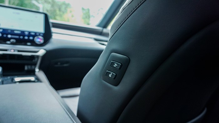 雷克薩斯RX450h+的前排座椅均配備了座椅通風(fēng)及加熱功能,帶有多項(xiàng)電動(dòng)調(diào)節(jié)。座椅的舒適性是雷克薩斯最拿手的,坐上去柔軟程度堪比沙發(fā)。第二排座椅同樣舒適,并且地板非常平整。后車窗的手動(dòng)遮陽(yáng)簾面積非常大。第二排座椅左右均帶有電動(dòng)角度調(diào)節(jié)功能。