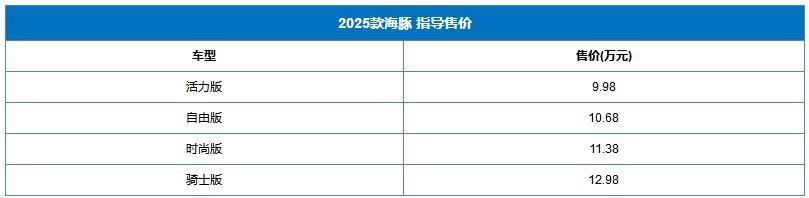 比亞迪2025款海豚正式上市 售價為9.98-12.98萬