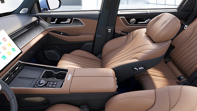 內(nèi)飾方面,新車提供15.6英寸懸浮式中控屏搭配液晶儀表。在中控臺及門板處還加入金屬飾板裝飾。新車前排提供按摩、通風(fēng)、加熱等功能,副駕還支持一鍵舒躺。