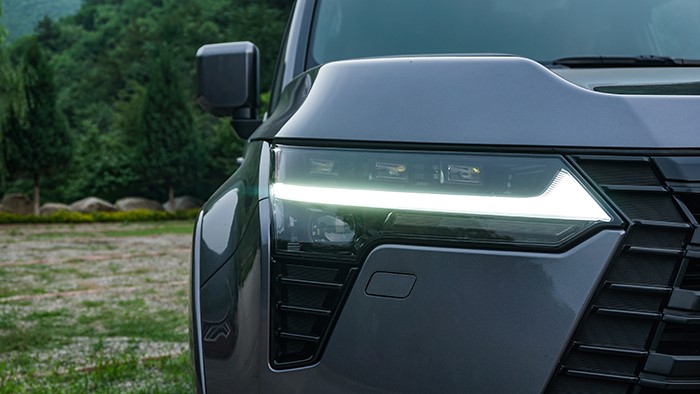 不規(guī)則輪廓的LED大燈組設(shè)計(jì)線條很銳利,光芒四射,當(dāng)然,提供給駕駛者出色的照明效果。