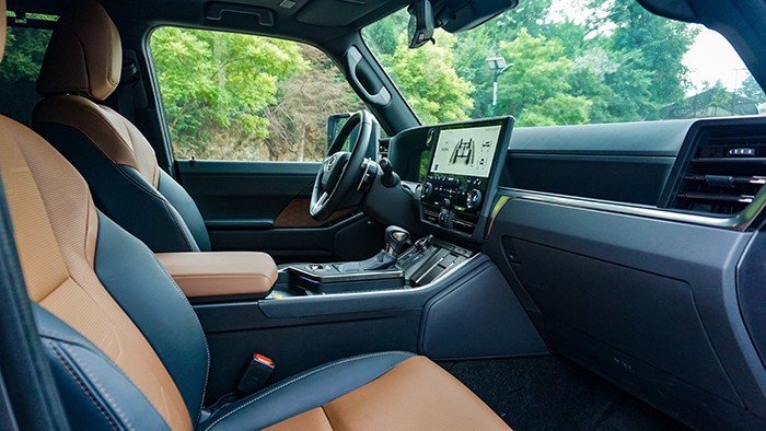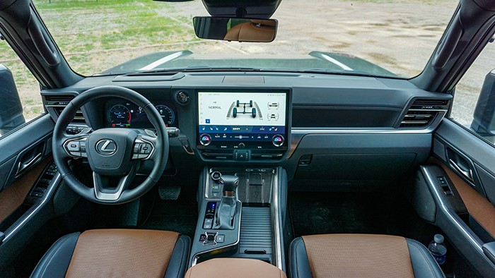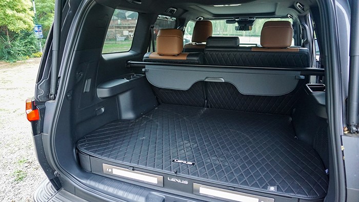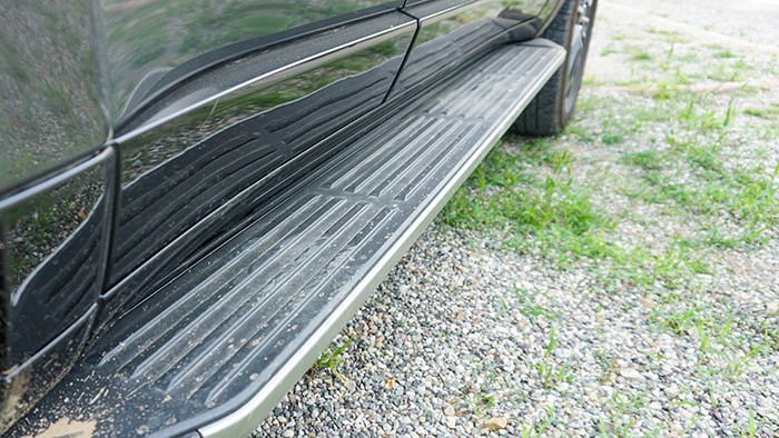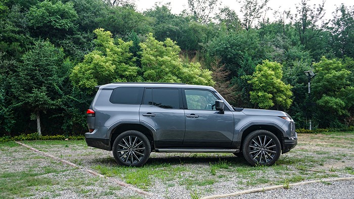GX550h凌峰版使用了22寸輪轂,輪胎規(guī)格為265/50 R22,品牌為鄧祿普,作為一臺(tái)硬派越野車實(shí)屬不小。大尺寸的車輪增加了整體的視覺(jué)沖擊力,同時(shí)也提升了車輛的運(yùn)動(dòng)感和豪華感。為了上車方便,腳踏板也是原廠配置。