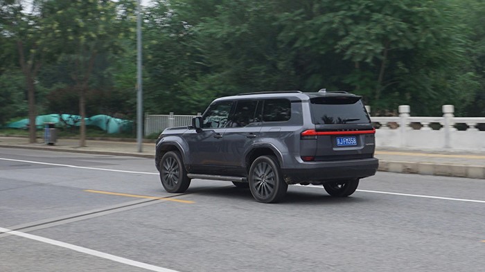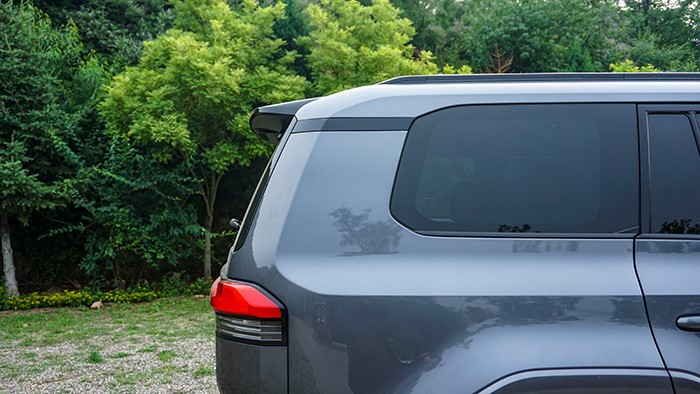 車身側(cè)面輪廓線條簡(jiǎn)潔利落,展現(xiàn)出SUV的穩(wěn)重感和力量感。車窗下沿做了階梯式設(shè)計(jì),方便駕駛員越野時(shí)觀察路況。車身尺寸為4960×1980×1935mm,軸距達(dá)到了2850mm。