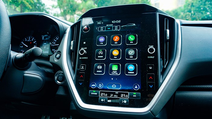 多媒體顯示屏支持蘋果CarPlay、百度CarLife和WeLink,而新增了無線蘋果CarPlay功能,可以擺脫數(shù)據(jù)線了。另外,空調(diào)與X-MODE調(diào)節(jié)也通過屏幕控制,沒有實(shí)體控制區(qū)了。屏幕頂部保留了斯巴魯很有特色的顯示,包括油門開度百分比、瞬時(shí)油耗和車身俯仰角度。