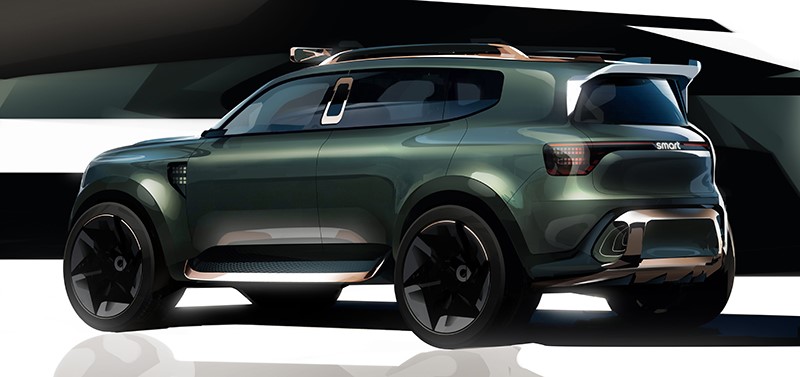 外觀方面,新車一改smart以往精致可愛的路線,方盒子車身搭配全新風(fēng)格前臉。前臉采用分體式大燈設(shè)計(jì),貫穿式燈腔中間有四個(gè)凹槽,內(nèi)置四顆燈源。在前包圍還有個(gè)大嘴格柵設(shè)計(jì),新車還提供戶外車頂平臺(tái)等配件。從設(shè)計(jì)圖來看,新車還將提供多種選裝配件,包括戶外奇旅探險(xiǎn)包。車尾和車頭造型相呼應(yīng)。車身尺寸方面,新車長寬高分別為4705*1920*1705mm,軸距2900mm。
